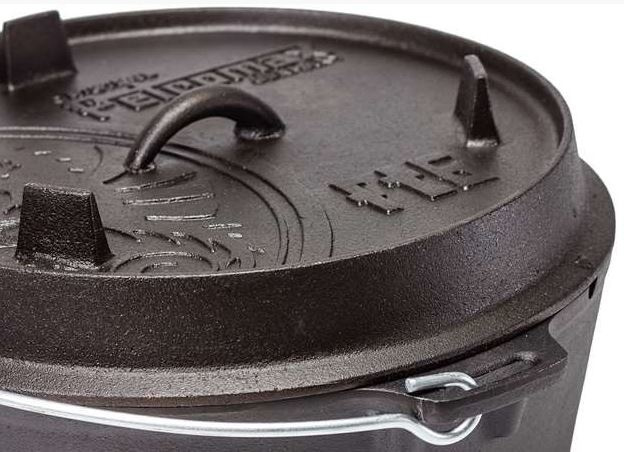 De Dutch Oven is de ideale metgezel voor koken boven open vuur of in de keuken. Dit model heeft een nieuw ontwerp deksel dat ook als koekenpan gebruikt kan worden. Door de opstaande rand kan je ook gemakkelijk kolen op de deksel leggen zonder dat de kolen eraf vallen. Perfect voor het bakken van een brood of heerlijke appelcake! De pan is gemaakt van 100% duurzaam gietijzer en is al voorbehandeld (pre-seasoned). De Dutch oven is dus direct klaar voor gebruik!