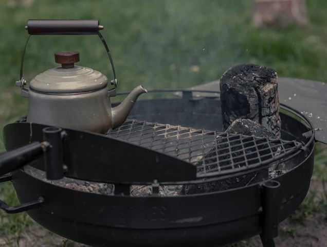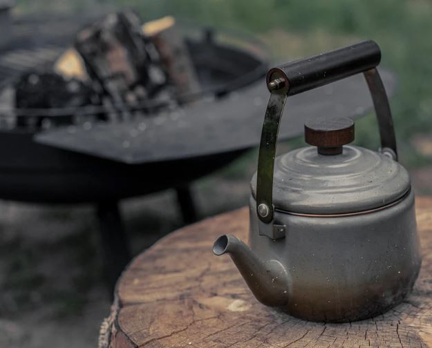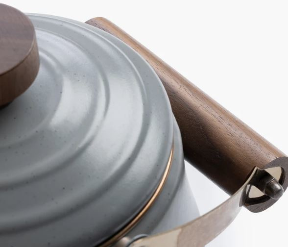 Met zijn gespikkelde emaille uiterlijk en walnoten details is dit een mooie vintage theeketel geworden. Met een inhoud van 1.5 liter waar je 6 koppen uit schenkt is dit de eyechatcer van je buitenkeuken.