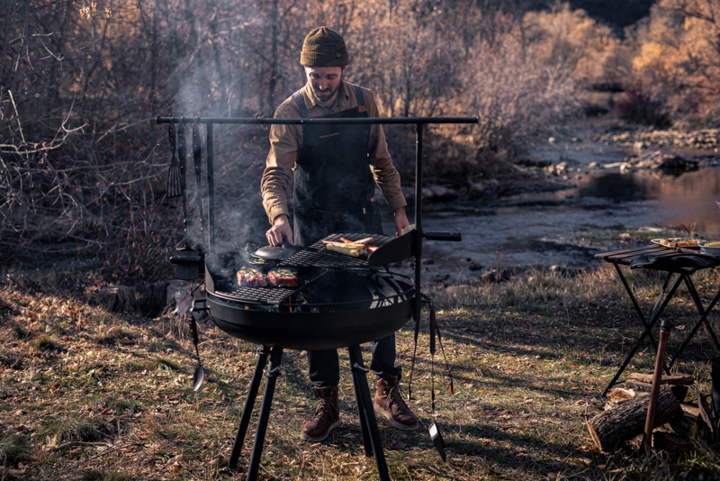 Met de Barebons Cowboy Grill heb je een Grill, BBQ en vuurplaats in een. Met het verstelbare rooster wat erbij heb je de keus om direct of indirecte warmte voor de perfecte BBQ en of Grill! De hangstang zorht ervoor dat je altijd alle kookgereedschap kwijt kan.