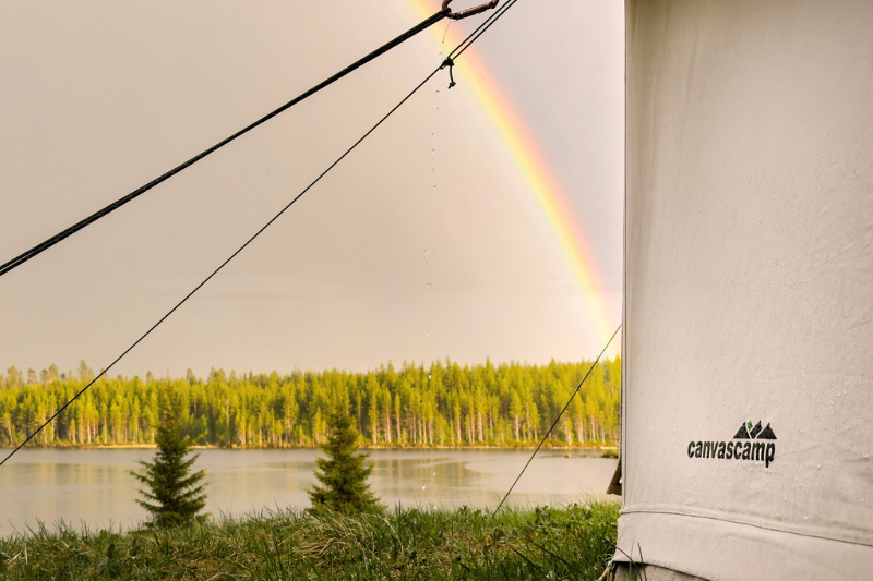 Canvas behandeld om UV-resistent, kleurvast, waterafstotend, en schimmel- en rotwerend te zijn met behoud van het ademend karakter. De coating is onzichtbaar, maar zonder twijfel een heel belangrijk aspect van je tent.